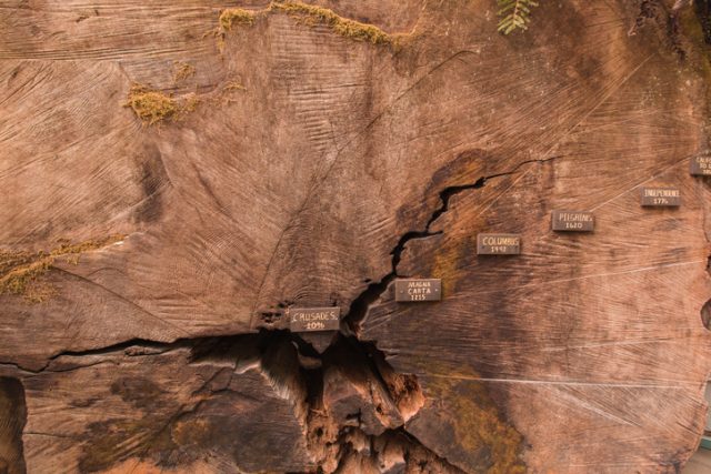 Counting the rings can tell us how long the tree has lived; more rings means an older tree. Tree rings can tell us other things, too. For example, they can potentially help us place events from the distant past more precisely in time.