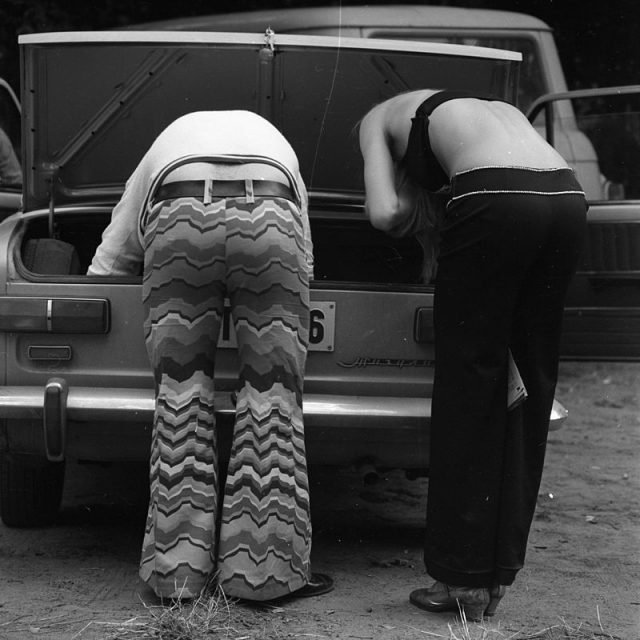 Apart from introducing a more libertine approach to sexuality, 1970s fashion was all about being tight on top and loose on the bottom, which gave way to the incredible fad of bell-bottom jeans, worn by men and women alike.
