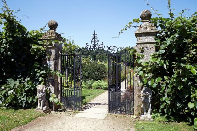 The house is set away from the road, rising on grounds that include stone statues and topiary that have remained unchanged for centuries.