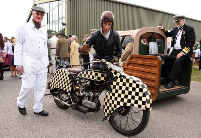 Graeme Hardy is seen at many events with his tribute to the 1935 movie No Limit, the story of a man who set out on a home built motorcycle to win one of the Isle of Man TT races. The movie starred George Formby a star of stage and screen known for his comedy routines and cheeky songs played on a ukulele. George Formby was a keen motorcyclist and the film role really suited him. Graeme Hardy’s especially modified motorcycle, the Shuttleworth Snap, is a 1926 Triumph P series 500cc machine.