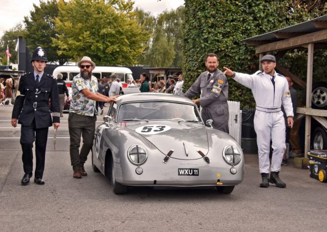 This image captures all the magic of Goodwood where vintage coppers escort the classics around the paddock.