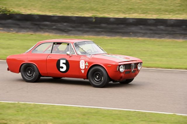The race saw the appearance of a bevy of Cortina Lotus up against a number of big American cars in addition to Jags. A few Alfa Romeo Giulia Sprints like this one were on hand to add colour to the pack.