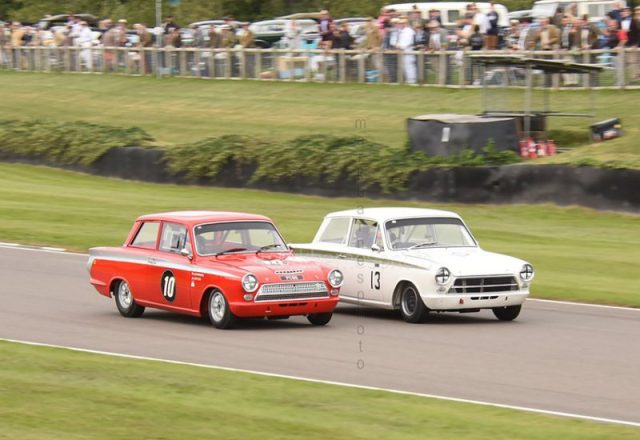 Competition between the Cortina Lotus drivers was fierce. These two look impressive going neck and neck but it was all to end badly for Pete Chambers in the red car when he rolled it a little while later.