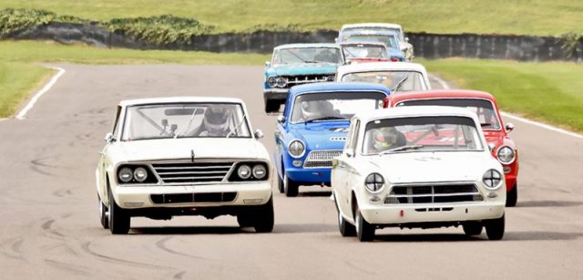 This brutal Studebaker Lark Daytona 500 driven by Matt Neal appears to dwarf the Cortinas. The car would finish the St Mary’s Trophy in third place.