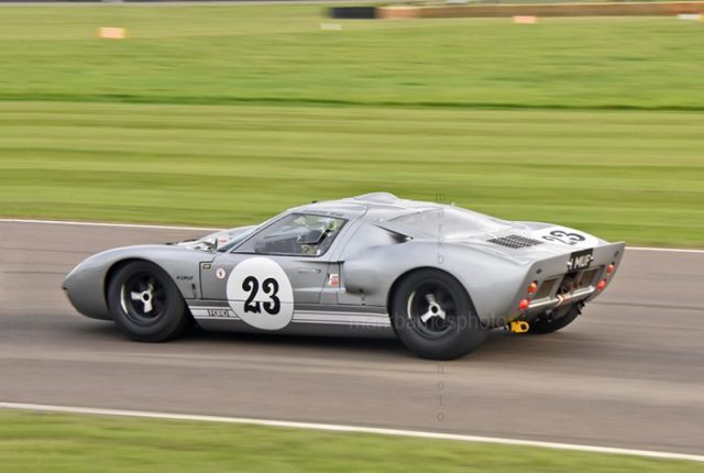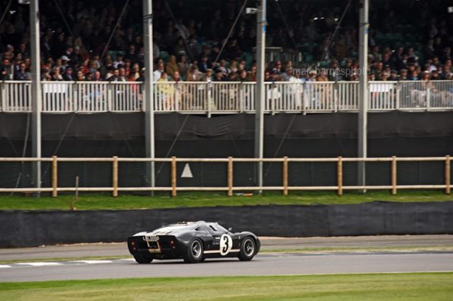 My last visit to the Revival was a few years back on a day when it bucketed down with rain from start to finish and I got soaked through. I was able to get some great shots on the track because so many people decided not to venture out on to the more exposed parts of the circuit. This time round the weather was kind. It wasn’t too hot and the light was okay. Finding a vantage spot for the sports cars was not so easy but a kind lady let me squeeze in to get a decent view. I am a big fan of the Ford GT40 and there were several in the race to savour.
