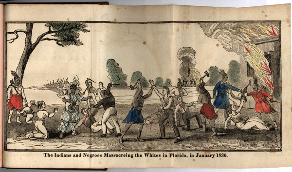 As this was happening, and for a short time afterward, a series of extremely violent events occurred between white settlers, troops and the Seminoles – some of which were marked with mutilation, rape, etc, by all sides.