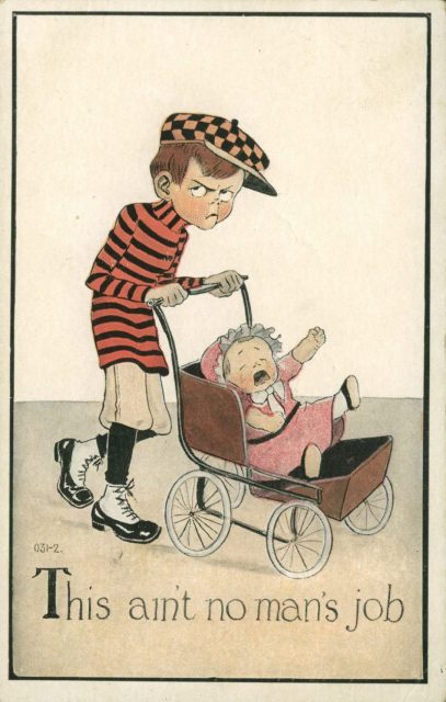Men of the early 20th century couldn’t be intimidated by the fear of being “outdone” by women. But that didn’t stop paranoid propagandists from creating postcards that were designed to do just that.