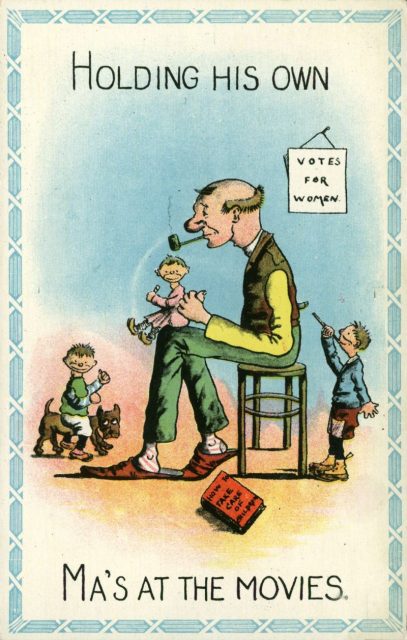 Like any change, the transition from a male-dominated society to a society which valued gender equality scared a lot of people. The suffragists were seen by some as a threat to family values and to man’s place in society. Some of these are clearly acts of satire, but others reflect a genuinely comical paranoia that gripped men with the fear of being “sent back home to care for the children.”
