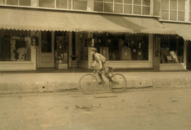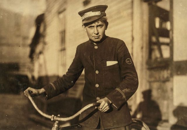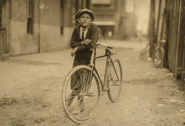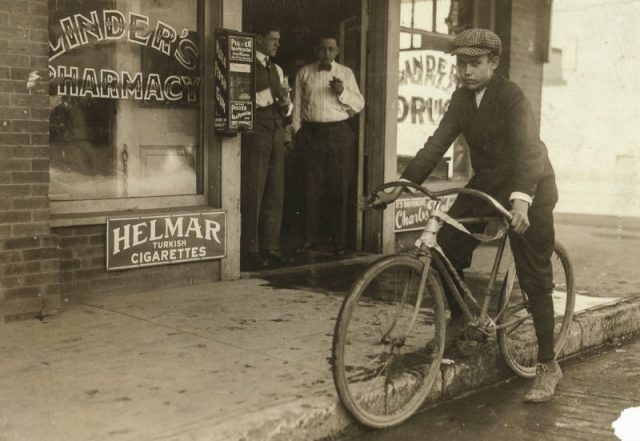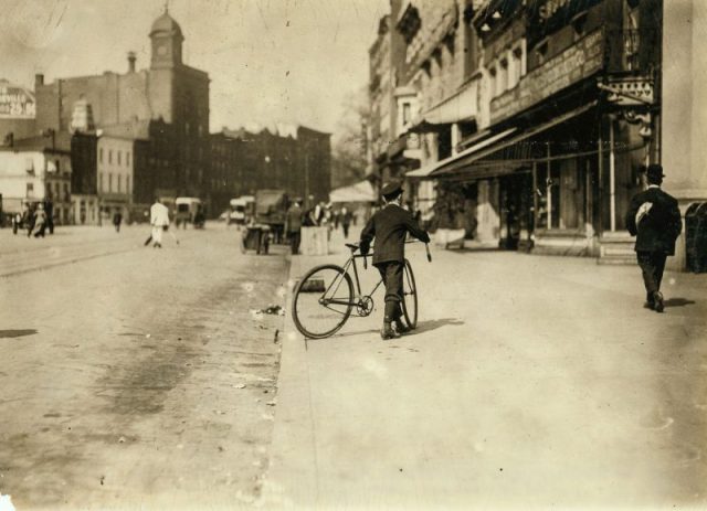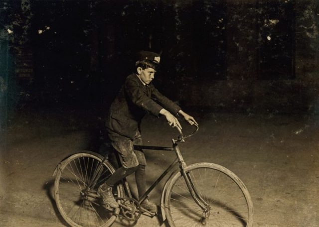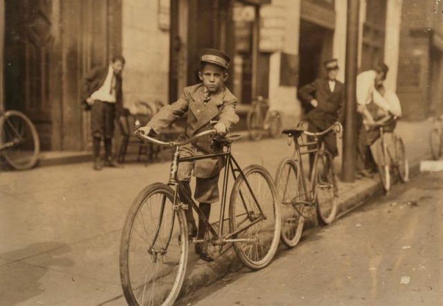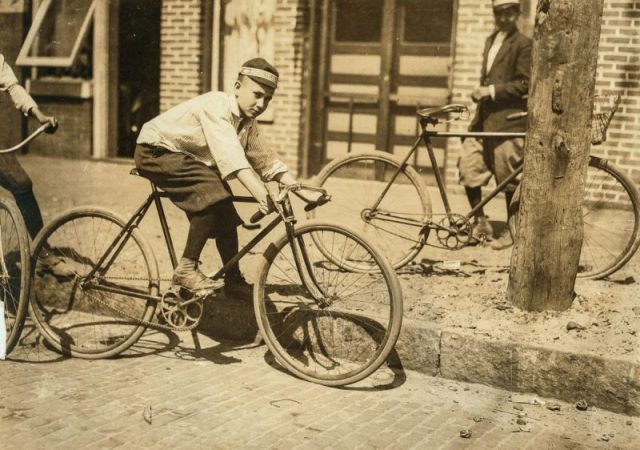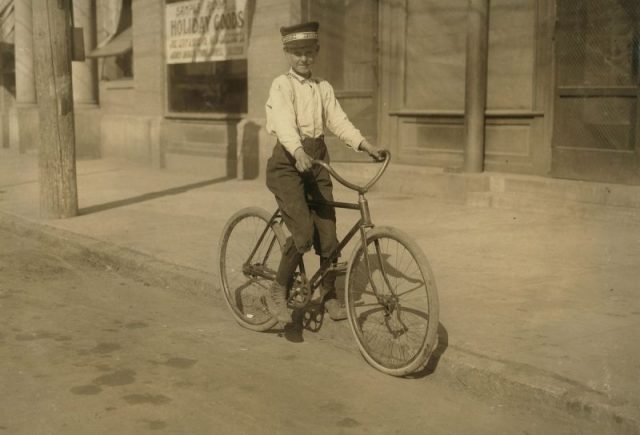 These pictures were taken by Lewis Hine, a sociologist, and photographer from New York, who was hired in 1908 by the National Child Labor Committee to expose the “exploitative” nature of the bicycle delivery industry.