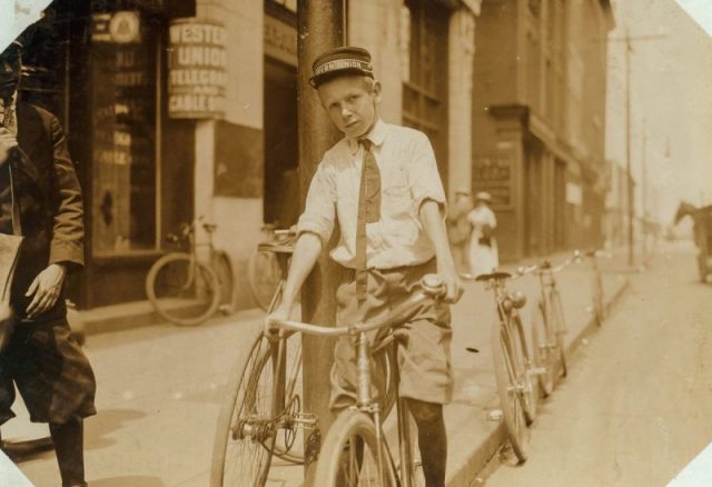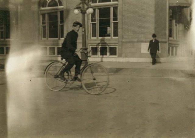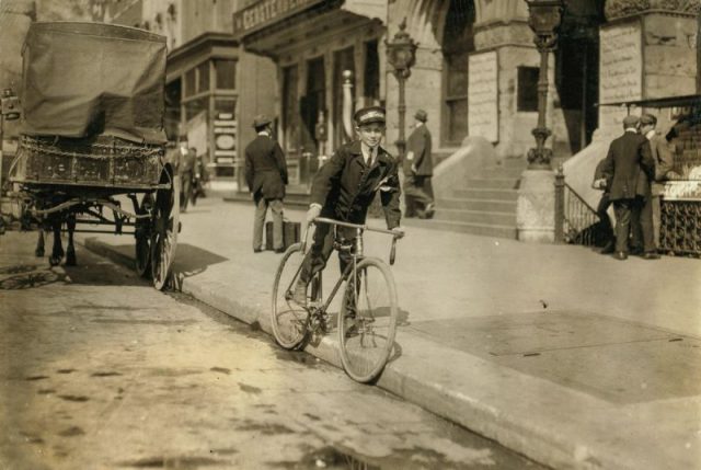 Companies who hired bicycle messengers found the service to be much faster than the ordinary postal service. But it didn’t take long before complaints about the working conditions of bicycle messengers gained the attention of the National Child Labor Committee.
