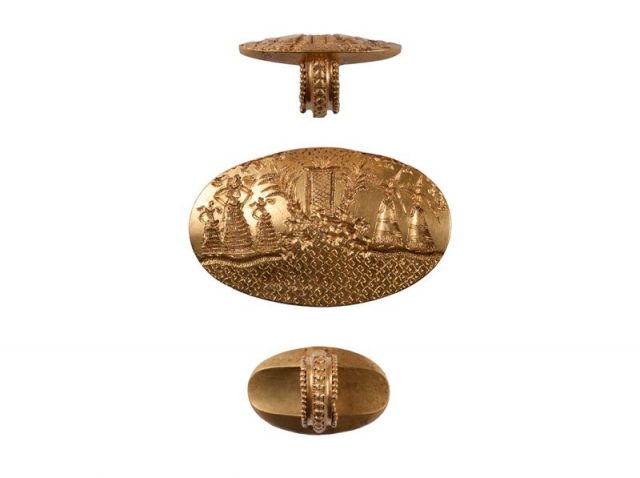More weapons were found near the warrior’s feet, as well as four carved gold signet rings, hundreds of beads made from gold, amber, jasper, amethyst and carnelian, a gold chain, more seal stones less intricate as the Pylos Combat Agate, a bronze mirror with an ivory handle, six ivory combs, and perforated boars teeth thought to be from the warrior’s helmet.