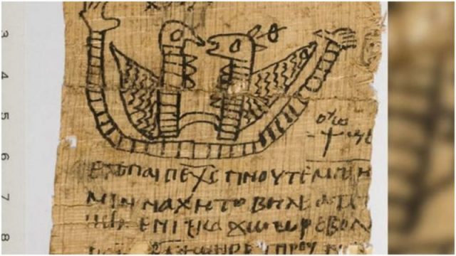 The image is of two bird-like creatures, connected by what could be a phallus, Dosoo said. Or, he speculated, it could be a chain. The text in the fragment is written in Coptic, an Egyptian language that uses the Greek alphabet.
