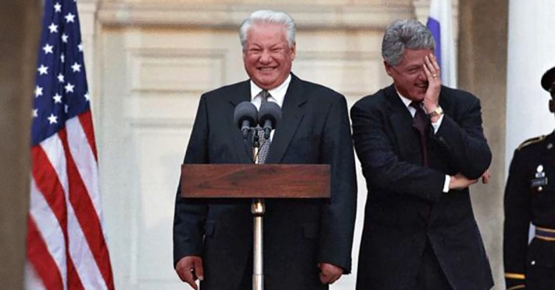 Clinton seems to have genuinely liked Yeltsin, but knew he was likely to say or do something strange at any moment, due to his tremendous intake of alcohol.