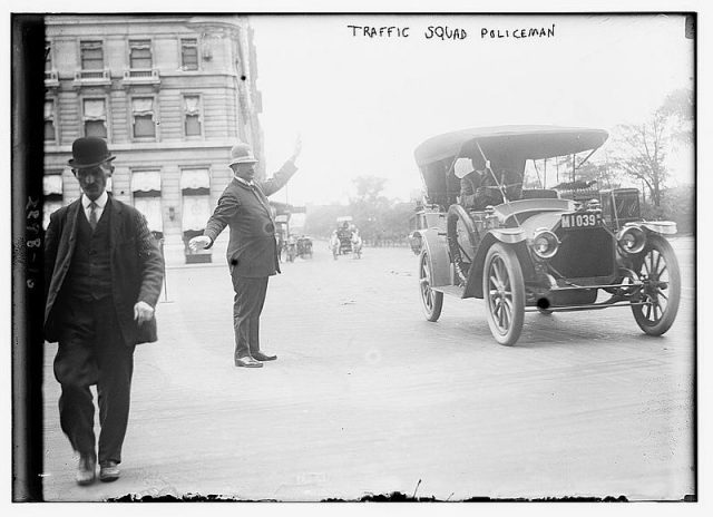 One program employed by the big cities was dubbed the Traffic Squad, a rotating group of policemen, who used hand signals to control traffic…which only confounded the general public.