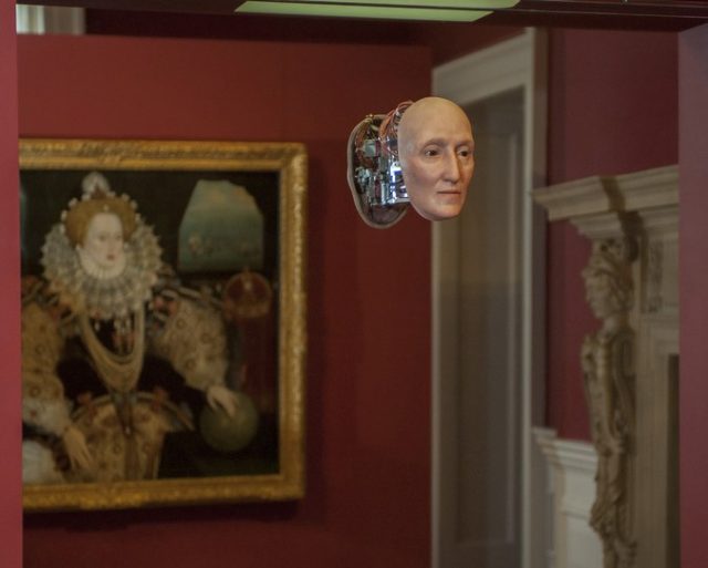 According to the Telegraph, Collishaw wanted to challenge this “mask” of power and authority. As part of the installation, he has created an animatronic face, depicting Elizabeth as an older woman, with the trappings of her royal position stripped away.