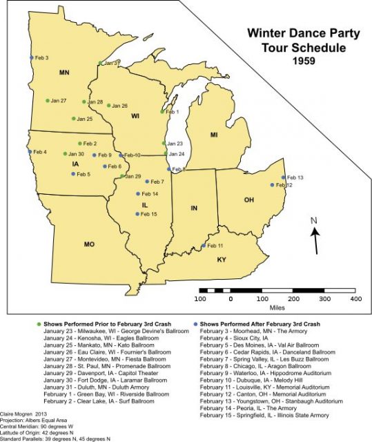 Buddy Holly historian, Bill Griggs, is quoted by the Star Tribune as saying of the organizers, “They didn’t care. It was like they threw darts at a map … The tour from hell — that’s what they named it — and it’s not a bad name.”