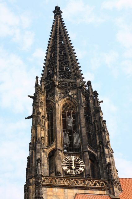 St. Lamberti Church, located on the Prinzipalmarkt, is adorned with a rather strange set of ornaments.