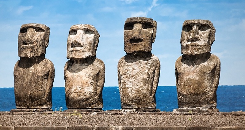 Easter Island is home to 887 monolithic carvings, called moai statues.