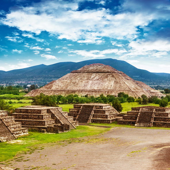 Twelve small pyramid platforms surround the Plaza of the Moon, which are believed to have been constructed to allow thousands of people to witness sacrificial rituals.