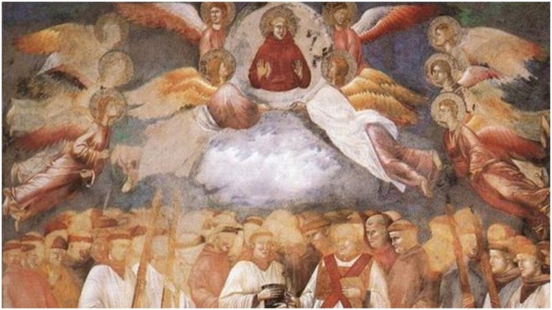 In that instance, a painting of St. Sebastian has the image of a knight on horseback riding out of a cloud high in the sky. Now historians know that the technique was first used by Giotto.