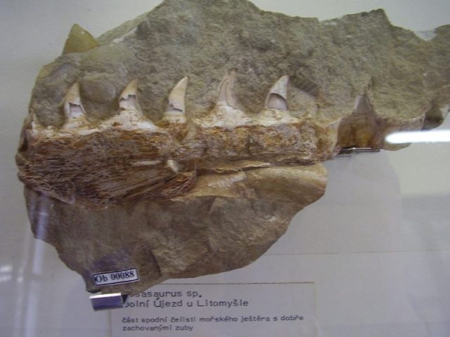 Another mosasaur shown in the exhibit is the Globidens phosphaticus, which had teeth perfect for crunching through hard-shell oysters.