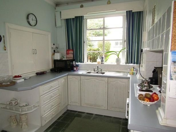 The only updated room in the house is the kitchen. It is rather small for contemporary tastes and it was renovated and updated to serve the modern needs of the owners. The whole house is covered in wooden block floors and dark wooden doors characteristic of the Art-Deco era. According to the Daily Mail: “Over the windows are decorative window pelmets incorporating the classic ‘stepped’ Art Deco design.