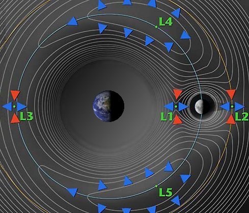 A Lagrange point, explains Space.com “is a location in space where the combined gravitational forces of two large bodies, such as Earth and the sun or Earth and the moon, equal the centrifugal force felt by a much smaller third body.”