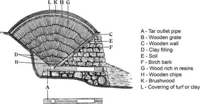 These were smaller vessels, and we know what they look like because those who sailed in them left stone carvings throughout the North and Baltic Seas’ coasts. Between 100 AD and 600 AD the pitch was made in small pits, each capable of producing enough for a small local fleet.