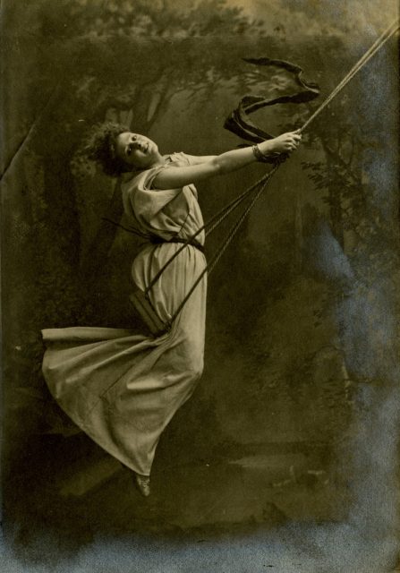 While studio photography was the most common approach in the early days of the trade, we can see a number of photos taken in the heat of the moment ― on the beach, or in a garden. There is also a number that were deliberately made as a joke.