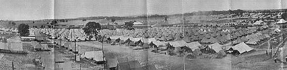 The camp for the veterans opened on June 29. It was enormous (about 280 acres), with room for over 5,000 tents, arranged by state. Artesian wells were installed, and each tent was equipped with two basins and a water bucket. The commission reported that over 53,400 veterans were housed in the makeshift lodgings.