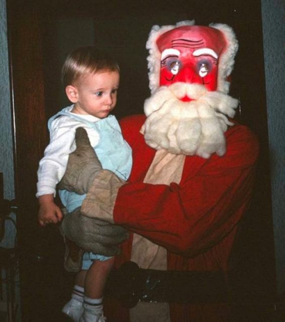 Although with best intentions, the costumes sometimes achieve an effect quite the opposite from joyful. In some cases, Santas wear masks that look like fuel for childhood nightmares, while others are just downright creepy.