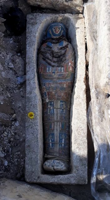 Egypt’s Antiquities Ministry said the mummies were dated to the Late Period (664-332 BC) and have an outer layer of cartonnage — papyrus or linen that’s covered in plaster — decorated with a painted human form. Three of the mummies are well-preserved, the Ministry stated.