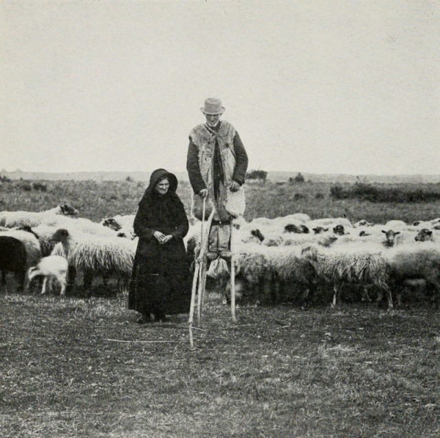 The stilts, called tchangues or “big legs,” were constructed of wood and stood approximately five feet high. They had wide straps to support the feet, and the part touching the ground was widened and made sturdy with sheep’s bone, not unlike small hooves. The stilts were so remarkably steady that the shepherds were able to live a large portion of their lives at a lofty height. Some were even dexterous enough to knit while watching their sheep.