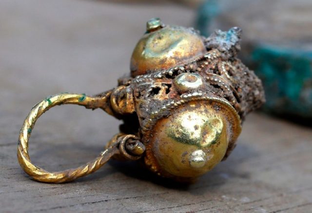 The hoard of 24 coins and a single gold earring appears to have been hidden by someone who planned to retrieve it, but never returned.