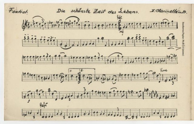 Something unusual struck Hall about the “Most Beautiful Time of Life,” however. It was arranged only for a tuba, trombone and violins, which were not likely to have been used in a work orchestra. She deduced that there had actually been a dancehall at Auschwitz: “They would play Sunday concerts in front of Commandant [Rudolf] Höss’ villa … playing for at least one hour these dance arrangements, so that soldiers, SS, could dance.” This would explain its foxtrot tempo.