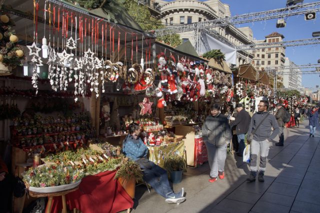 The market is located in front of Barcelona Cathedral in the gothic part of the city. It has over 300 stalls with the traditional Christmas ornaments and food, as well as puppets, jewelry, musical instruments, and figuritas de Belén, which are small nativity figures that you use to make your own crèche. In the local language of Catalan, these scenes are called Pessebres.