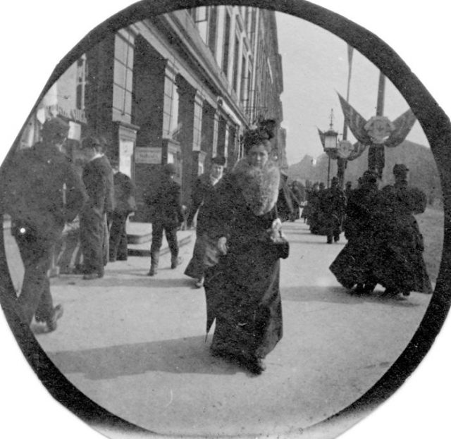 Between 1893 and 1897 he used his buttonhole lens to photograph passers by on Oslo’s famous Karl Johansgate street. He began “Working like a paparazzo,” with his subjects being generally unaware they had been preserved for the ages on celluloid.