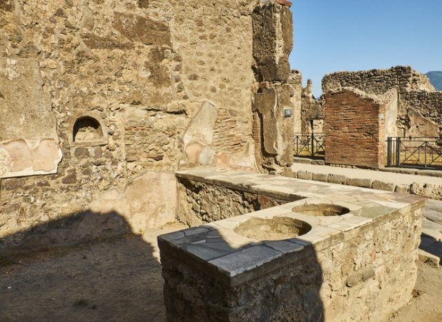 Historical records, as well as archeological findings, have shown that thermopolium were widely spread around the territory of Ancient Rome. Reportedly, there had been 150 restaurants of this type in Pompeii before the famous volcanic eruption occurred.