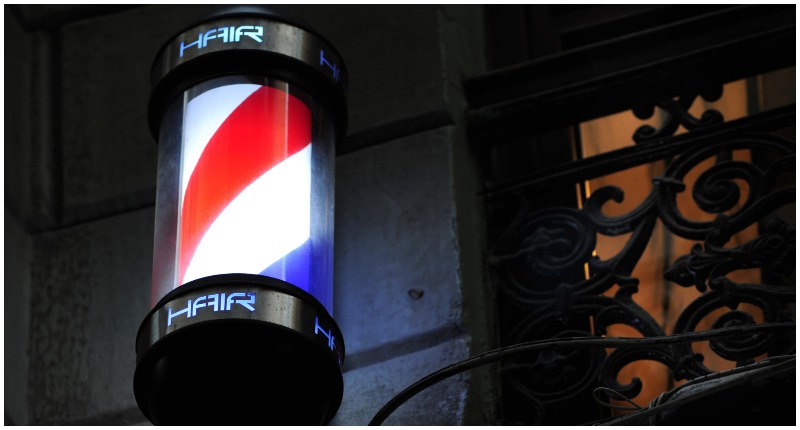 That’s why barbers have this on the outside of their shops — as a nod to the history of the profession.