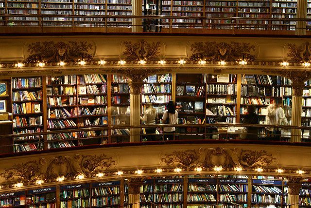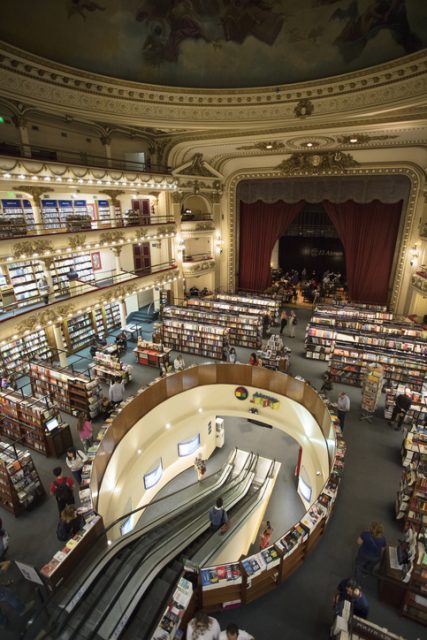 This magnificent bookstore is located in the Recoleta neighborhood of Buenos Aires, a fashionable part of the city known for its rich cultural heritage. In the late 19th century, at the height of the yellow fever epidemic, the rich and affluent families of Buenos Aires flocked to the hills of Recoleta to avoid the disease. As a result, it became the center of the city’s cultural scene, and is home to art galleries, lavish palaces, theaters, and of course, bookstores.