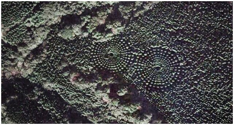 However, scientists did not anticipate the beautiful patterns that would be created as a result of the planting scheme. The varying sizes of the trees in the ring create a three-dimensional effect and produce a particularly interesting pattern only when photographed from above.