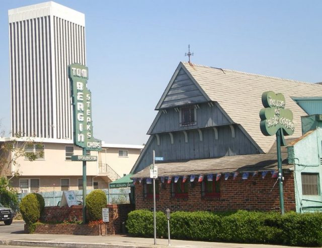 Tom Bergin’s was opened in 1936 on Wilshire Boulevard under the name of Horseshoe Tavern & Thoroughbred Club. It is famous for its Irish Coffee and its walls are clad with shamrocks bearing the name of famous visitors, including John Wayne, Julia Roberts and Ronald Reagan.