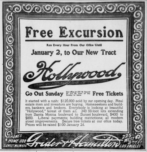 Imagine this: it’s 1900 and you live in Hollywood. You are one of a population of a few hundred. In the village, you can shop in two markets. Other amenities in your surroundings: a local post office and a hotel that hasn’t been built yet.