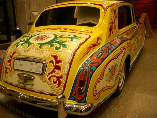 It’s fairly safe to say that John Lennon had the most luxurious of the cars with psychedelic paint. In 1964, Lennon bought a Rolls Royce Phantom V. It was originally all black except for the radiator and it had every possible extra that Rolls Royce offered.
