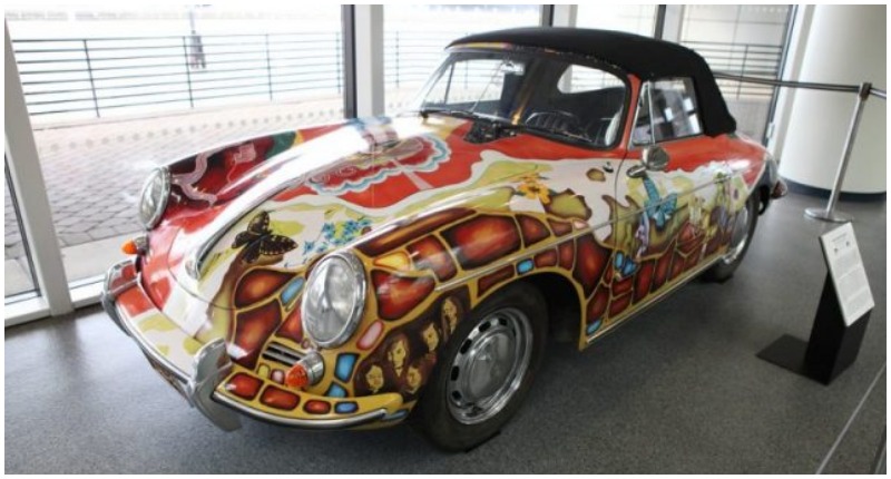 There are three vehicles in particular from the ’60s that stand out the most because of their custom paint jobs. In 1968 Janis Joplin bought a Porsche 356C and had one of her stage hands paint it in a psychedelic theme including butterflies, birds, mushrooms, and landscapes that made it one of a kind.