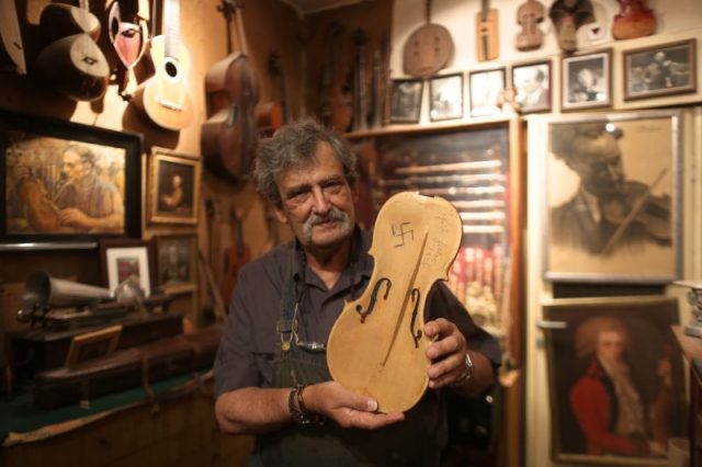 Weinstein has a collection of over 45 violins from the time, and in 2012, he found another. This time, the inscription both chilled and puzzled him. Inside the violin was the inscription “Heil Hitler!”, with a deeply engraved swastika in it.