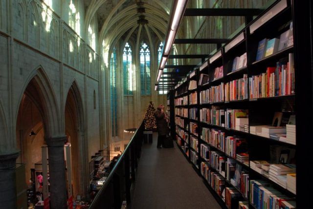 Churches have traditionally been associated with literacy, writing, and publishing. This church, built in 1294, continues the tradition in a way suitable for modern times.