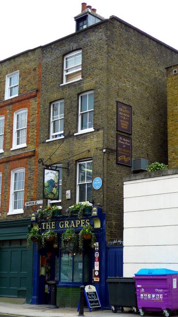 In the Limehouse Reach neighborhood of London, The Bunch of Grapes (now simply The Grapes), is a tavern that has been serving beer for over 500 years. Though public houses have stood on the exact site since 1583, The Grapes that exists today has been in business since 1720.