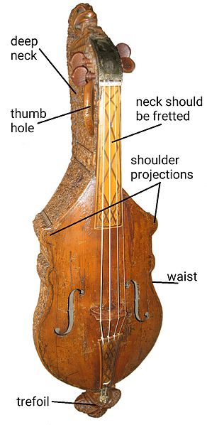 The citole is made of boxwood, displaying a delicately carved and picturesque woodland scene with medieval iconography. However, the instrument never kept its original form and was transformed into a violin in the late 16th century.