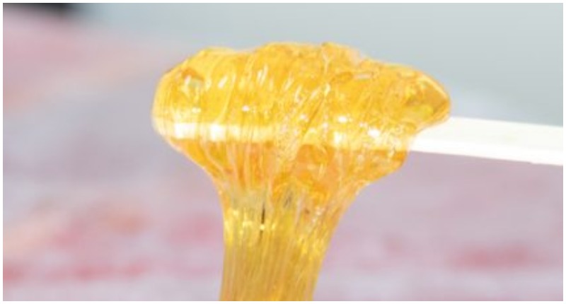 A thick sugar paste is made of honey or melted sugar, lemon juice and molasses. When applied to the skin the hairs stick to the thin layer of paste which is then easy to remove.